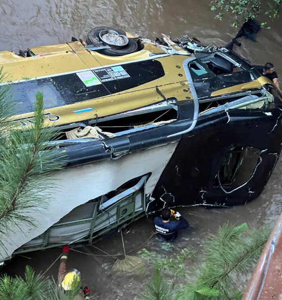 La violencia del impacto hizo que el ómnibus atravesara el guardarraíl del puente y cayera al cauce del arroyo Yazá, mientras que el automóvil quedó completamente destrozado sobre la banquina.